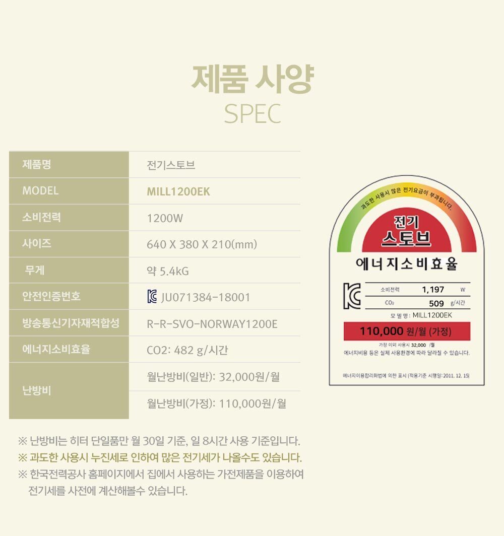 북유럽 컨벡터 전자식 터보모델 mill 1200EK
